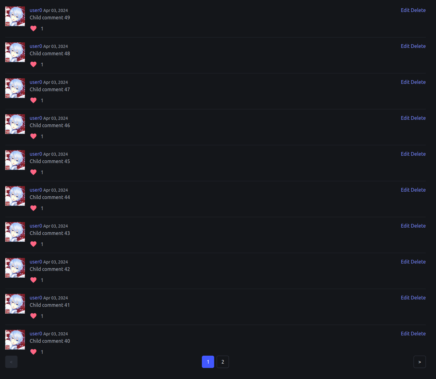 comment.commentsor the replies to comments. I have designed the database schema to have a nesting of 1 level. I managed to get everything to render properly, looks legit thanks to Bulma.io. BUT when there are tons of comments, page load times slow down so what is the solution?PAGINATION!